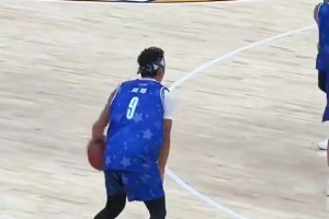 將球跨過雙腿再將球環(huán)繞背后一圈飛扣?擱扣籃大賽也能50分吧?