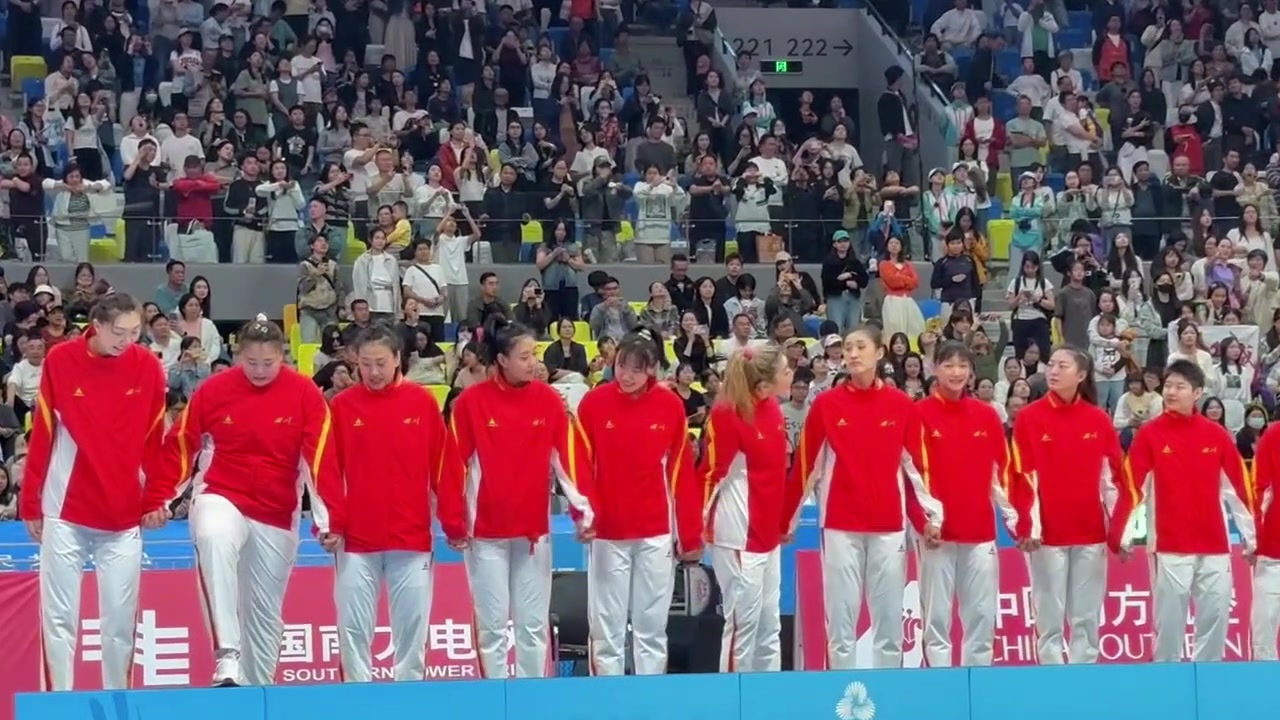 賽后頒獎(jiǎng)儀式,四川女籃眾將登上領(lǐng)獎(jiǎng)臺(tái),韓旭和劉禹彤的互動(dòng)很可愛,大家看來心情沒有受到太大影響。