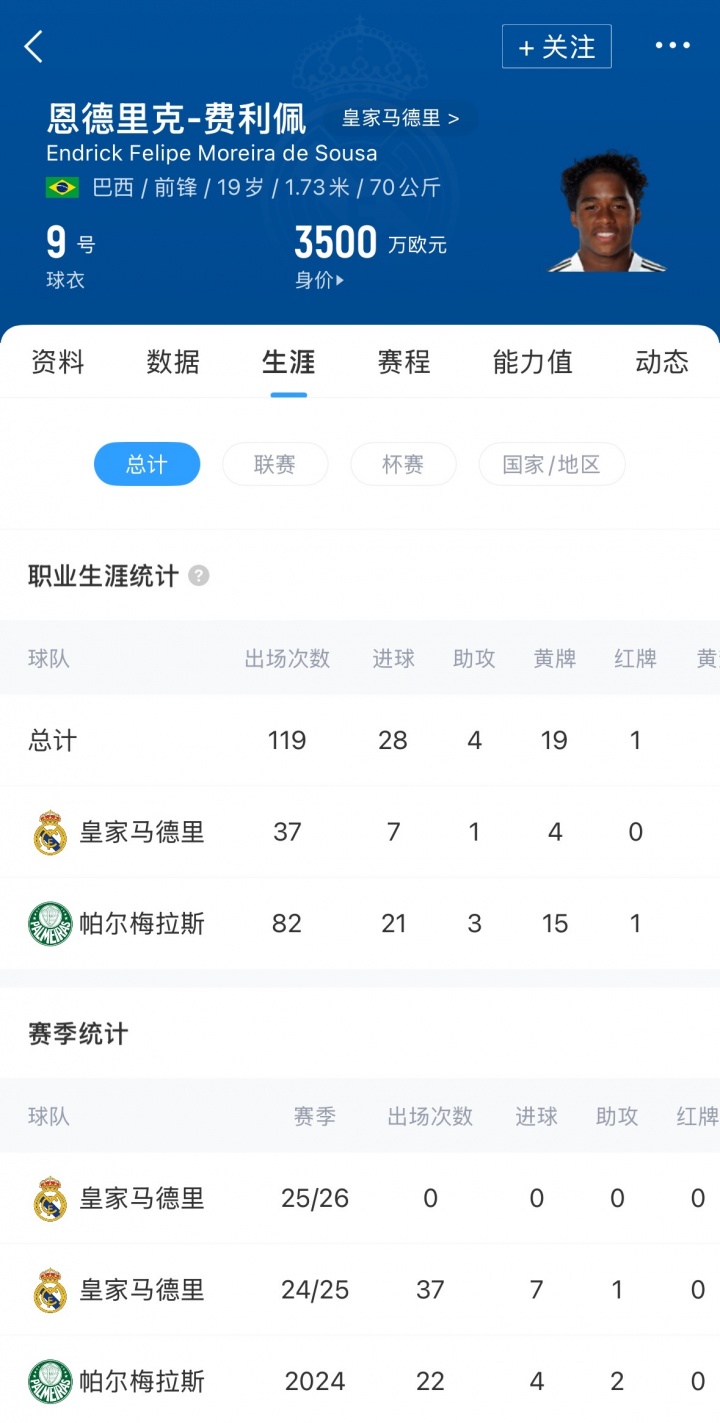 即使是對陣萊萬特和凱拉特的比賽,恩德里克仍坐在替補席,即便球隊有巨大領先優(yōu)勢,他甚至都沒有獲得熱身機會。恩德里克夢想著跟隨巴西參加2026世界杯,但缺乏出場時間可能會讓他與國家隊大名單漸行漸遠。最近一期巴西隊名單,恩德里克則再次落選。