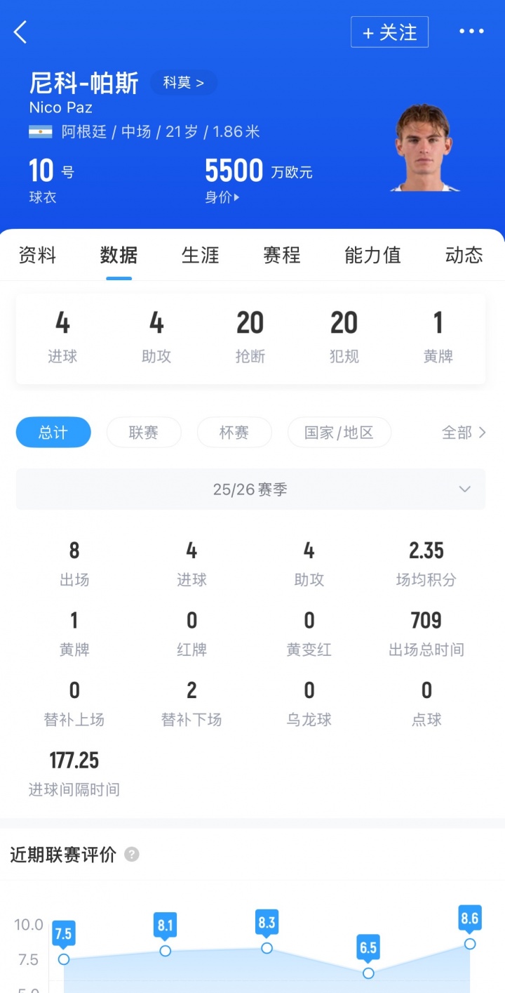 羅馬諾在播客中說道:“帕斯天賦驚人,已經(jīng)吸引了全歐洲的關(guān)注。熱刺在此前就曾試圖簽下他,報價總金額高達7000萬歐元。但科莫和皇馬都拒絕了這份報價。要知道,盡管帕斯名義上歸屬科莫,但皇馬有他50%的轉(zhuǎn)會分成以及1000萬歐元的回購條款。