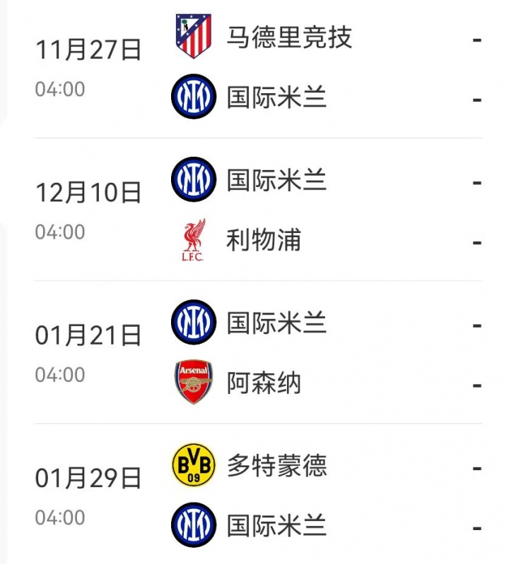 雖然第一階段前四場(chǎng)比賽全勝,但國(guó)米接下來(lái)的歐冠賽程兇險(xiǎn)異常。本階段下半程,國(guó)米將先后對(duì)陣馬競(jìng)、利物浦、阿森納和多特,其中對(duì)陣馬競(jìng)(第5輪)和對(duì)陣多特(最后一輪)是客場(chǎng)作戰(zhàn)。