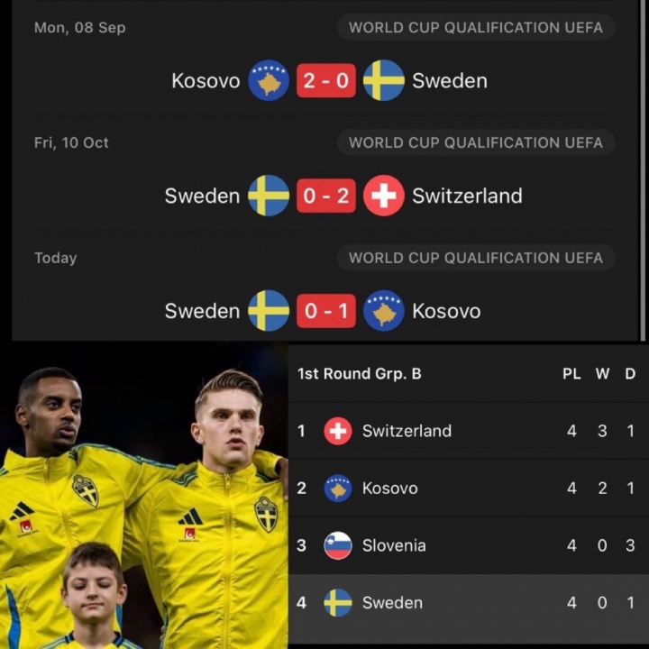 10月14日訊 世預(yù)賽賽場,瑞典0-1不敵科索沃,瑞典無緣直接晉級世界杯。