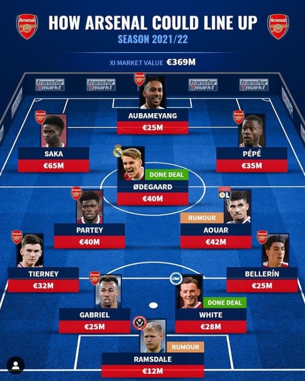 2021年,曾有報道稱阿森納、曼聯(lián)、利物浦、尤文等歐洲豪門有意簽下彼時23歲的奧亞爾。德轉也一度將奧亞爾列入槍手新賽季的首發(fā)預測中。前里昂總監(jiān)小儒尼尼奧在接受采訪時也表示阿森納曾試圖用錢+貢多齊的方式交換奧亞爾,但遭到里昂方面的拒絕。