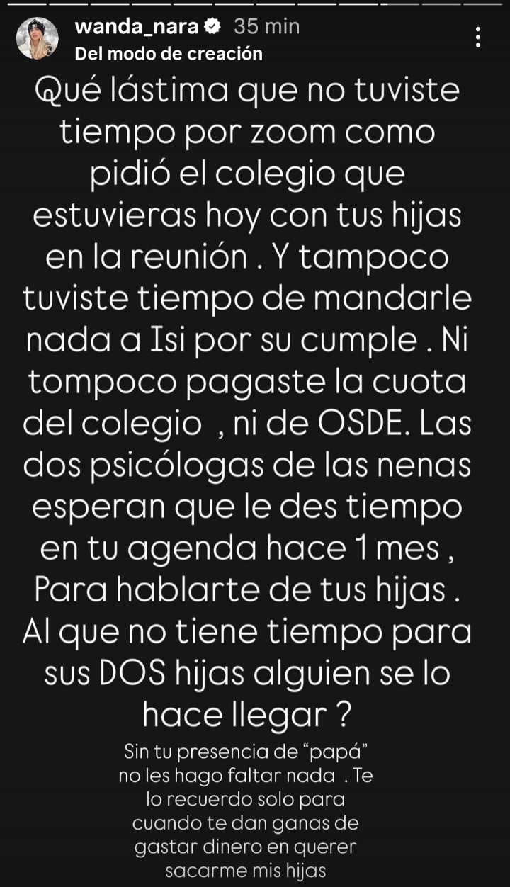 伊卡爾迪前妻旺達(dá)·娜拉連續(xù)更新兩條社媒社媒,批評(píng)伊卡爾迪對(duì)待孩子的行為。