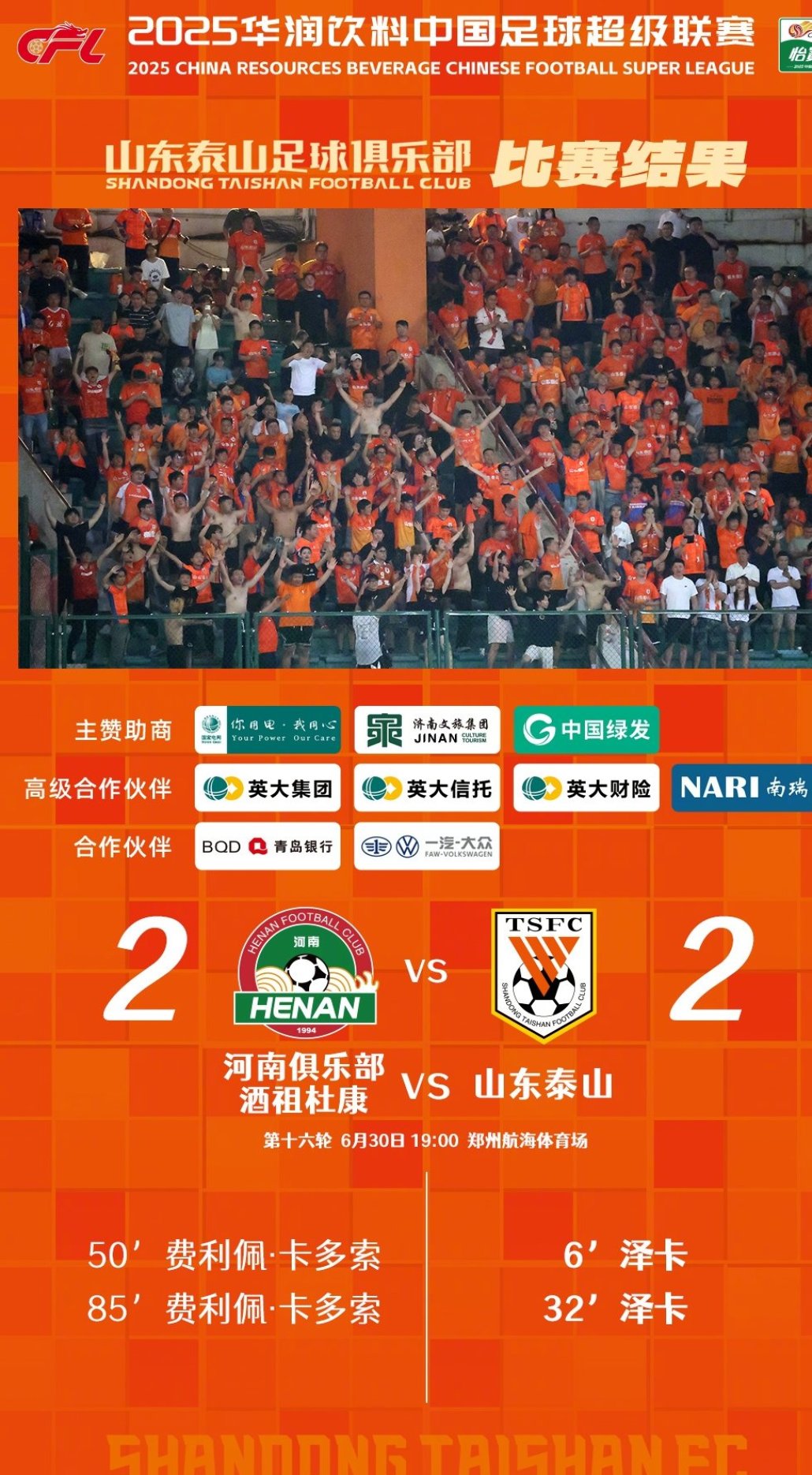 感謝所有遠(yuǎn)赴客場冒雨支持球隊的球迷朋友們。球隊在這場比賽中跌宕起伏,沒有展現(xiàn)出應(yīng)有的技戰(zhàn)術(shù)水平。球隊會利用間歇期強化訓(xùn)練,重整旗鼓,堅定信心,激發(fā)斗志,迎接下半程的聯(lián)賽。 ???